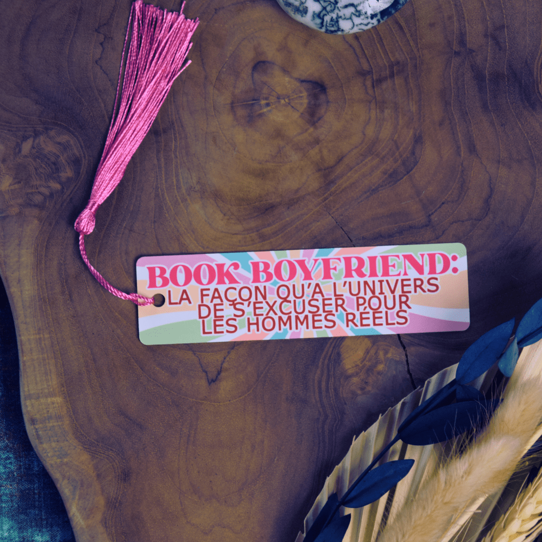 Marque-page en métal décoré du design Book boyfriend : la façon qu’a l’univers de s’excuser pour les hommes réels.